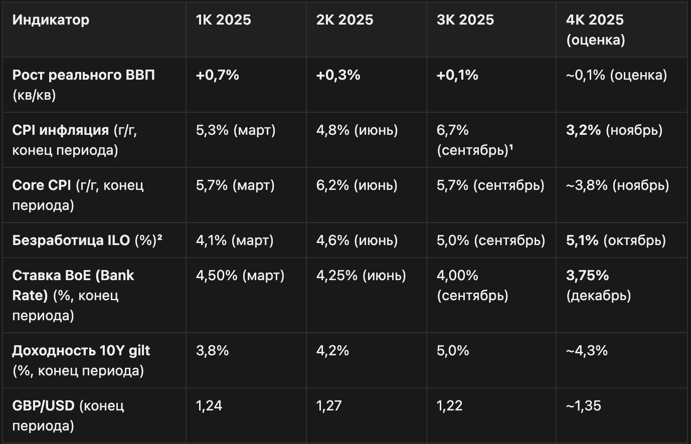 Великобритания — выбранные индикаторы по кварталам, 2025